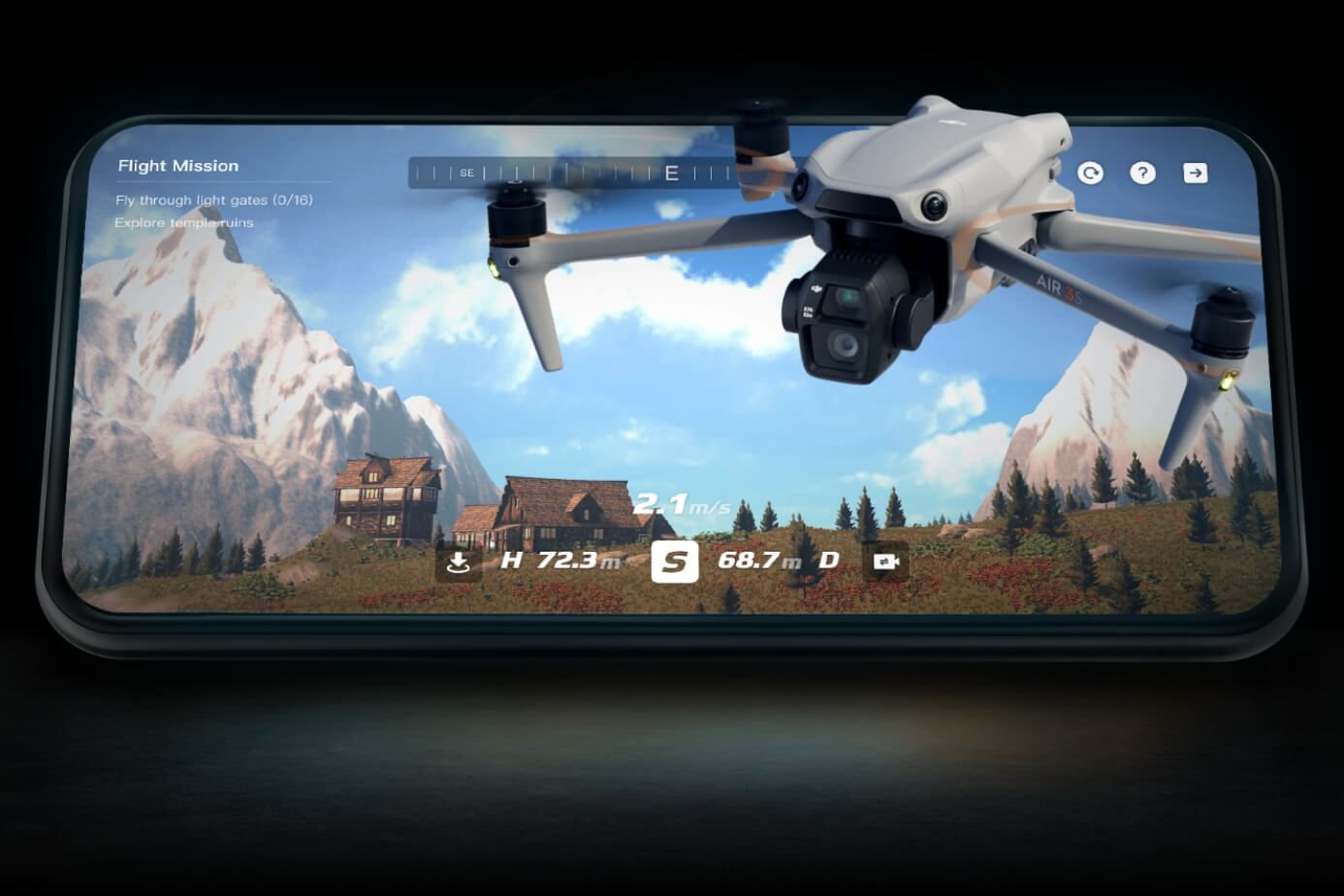 O aplicativo DJI Fly oferece funcionalidades especiais, como edição de vídeo, compartilhamento direto e um modo de edição automática, facilitando a criação de conteúdo. Além disso, o DJI Air 3S agora permite transferir arquivos diretamente para um smartphone mesmo quando o drone estiver desligado. Também é possível realizar transferências para um computador com o drone desligado, bastando conectar o DJI Air 3S através de você