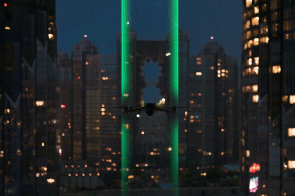 Com LiDAR frontal, o DJI Air 3S pode detectar obstáculos como prédios altos e subir para evitá-los, contornando-os por cima, mesmo em condições de pouca luz. Isso garante um retorno seguro à base durante a noite.